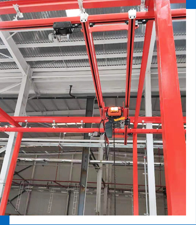 將KBK懸掛起重機主梁吊掛裝置與軌道上的小車或承載粱連接,當起重機與軌道呈直角布置時,應使主梁吊掛裝置垂直。